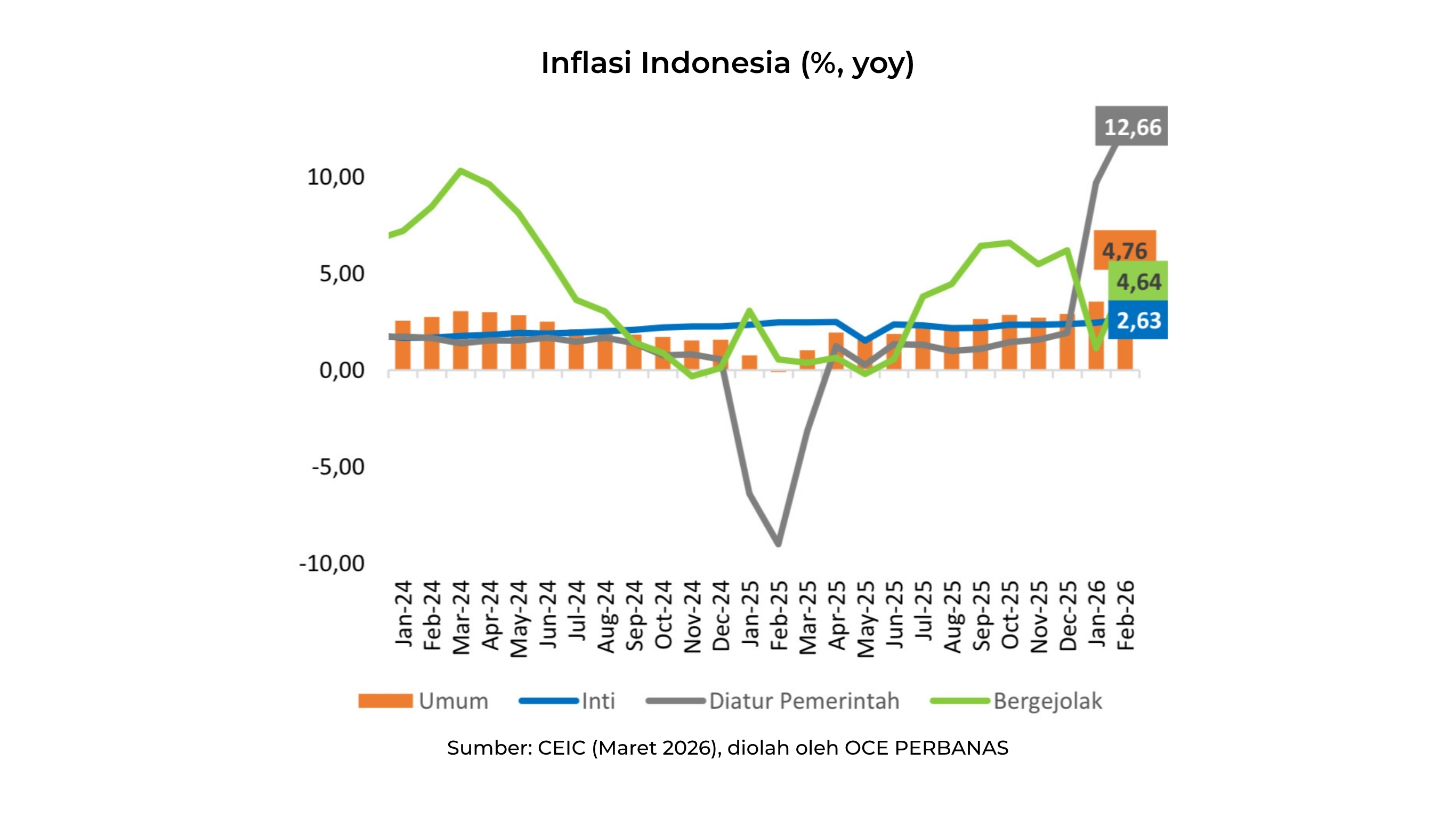Inflasi Februari 2026 meningkat signifikan menjadi 4,76% (yoy) dari 3,55% (yoy) pada Januari 2026. Kenaikan ini dipicu lonjakan harga pangan akibat Ramadan serta normalisasi subsidi tarif listrik di awal tahun. Tingginya inflasi menjadi salah satu alasan BI mempertahankan BI Rate di level 4,75%..jpg)